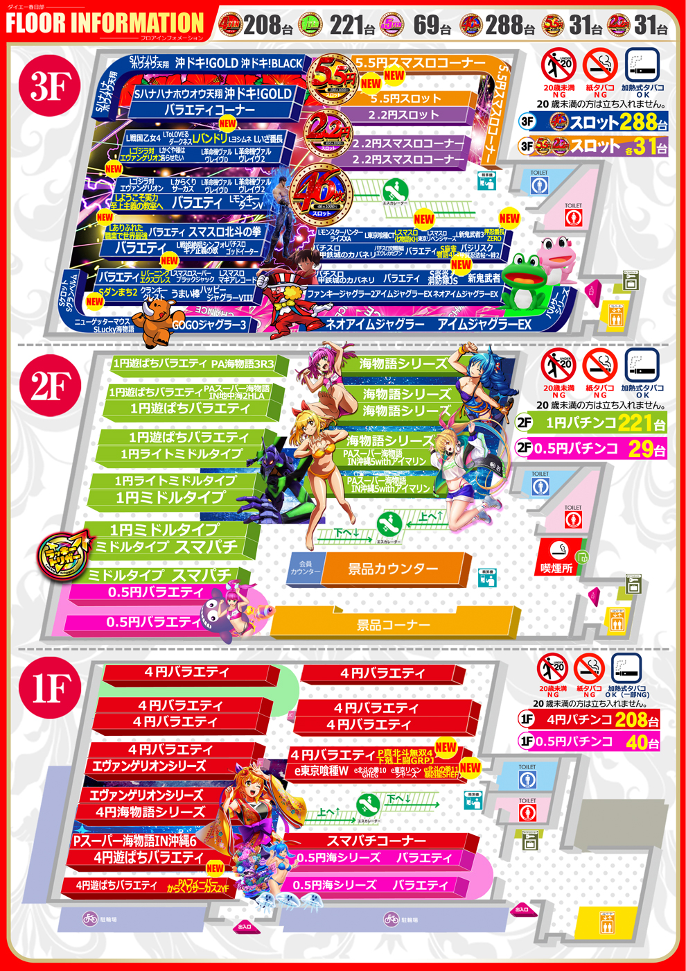 | 稼働台数 | パチンコ480台 / パチスロ333台 |