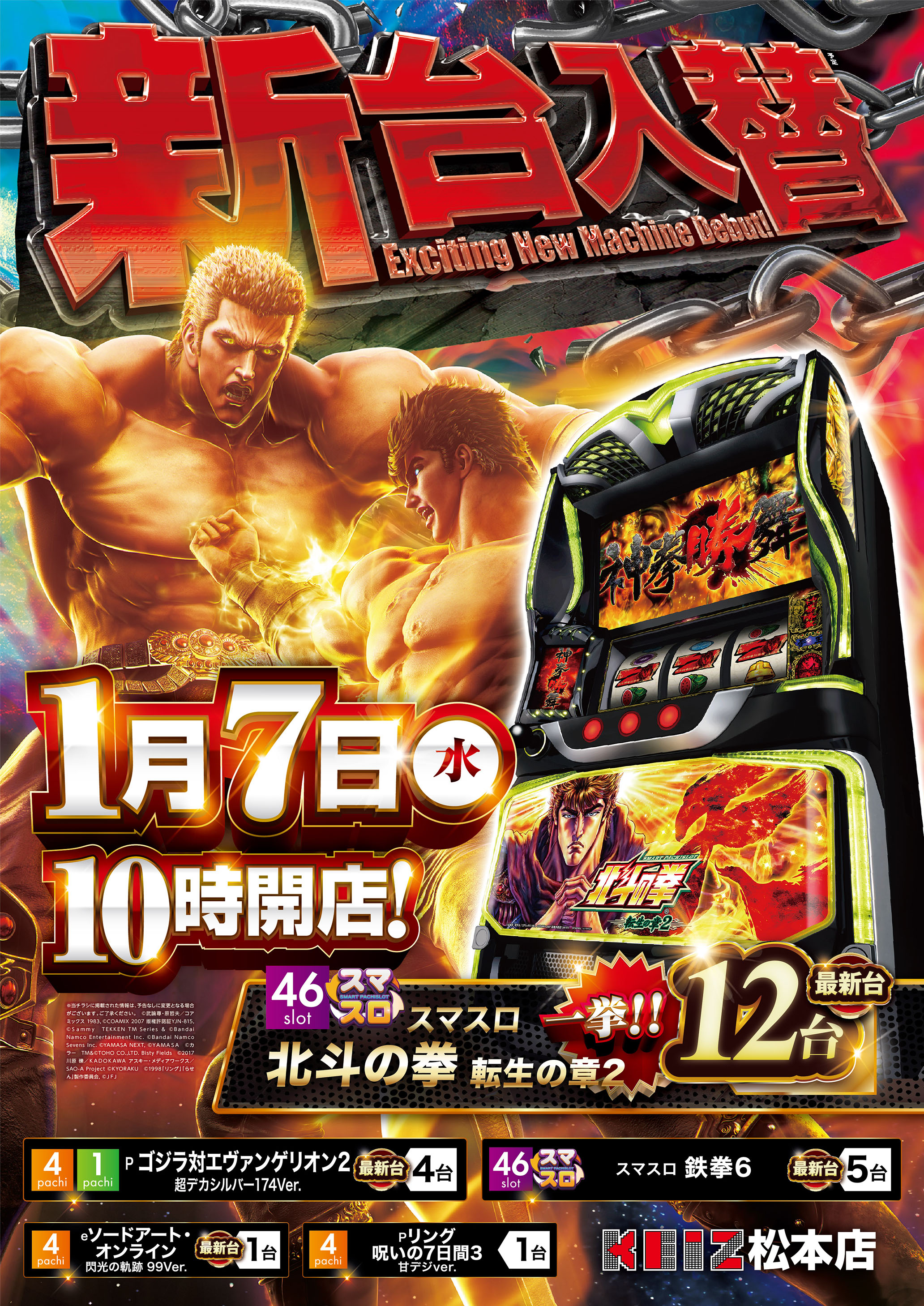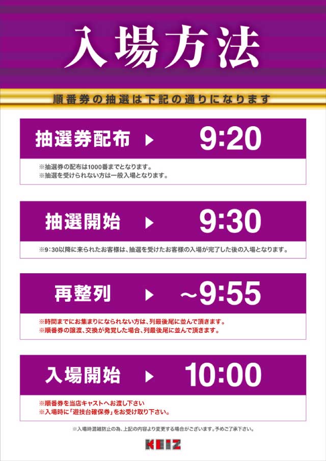 | 営業時間 | 10:00 ~ 22:45 会員カードをお持ちのお客様は 閉店時の遊技時間+5分の延長が可能です。 (貯玉・貯メダルのみ) |