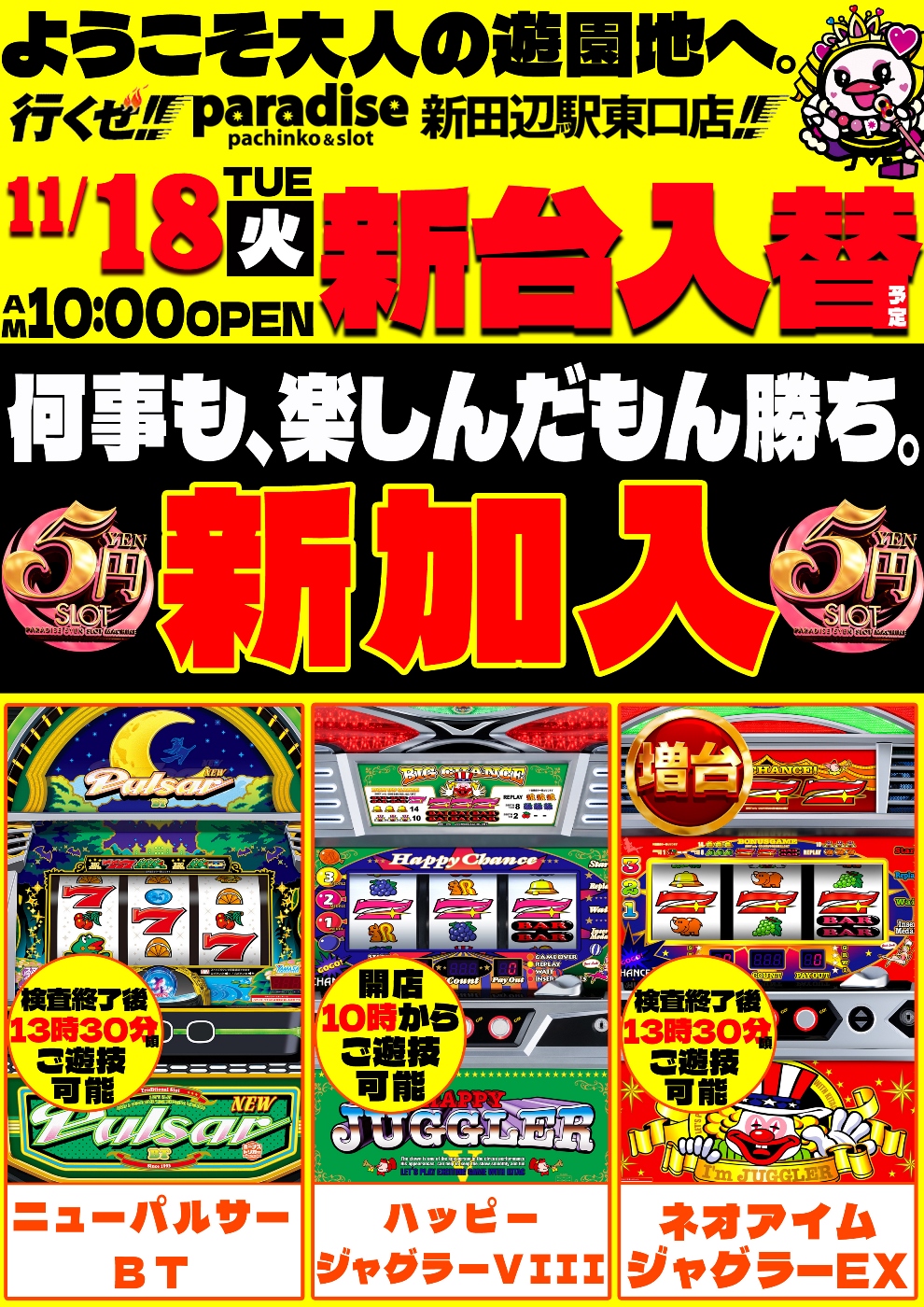 選べる5レート♪ 近鉄『新田辺』駅東口から徒歩2分!スロットエリア加熱式たばこOK!