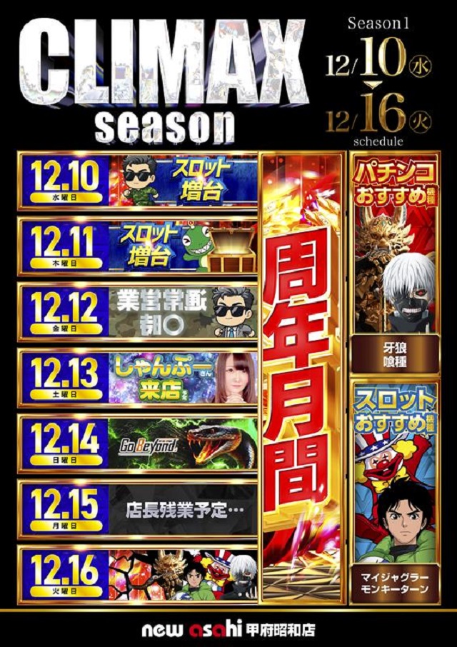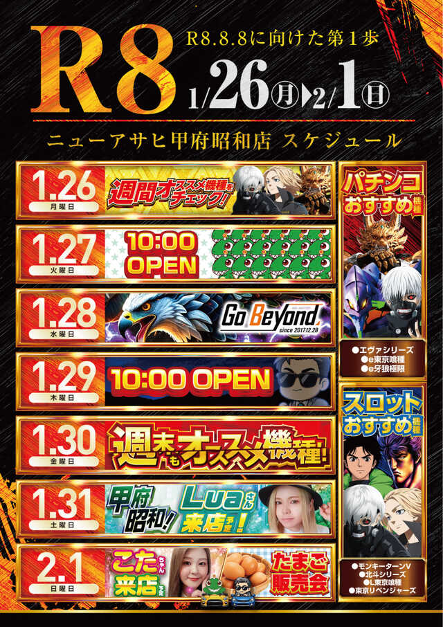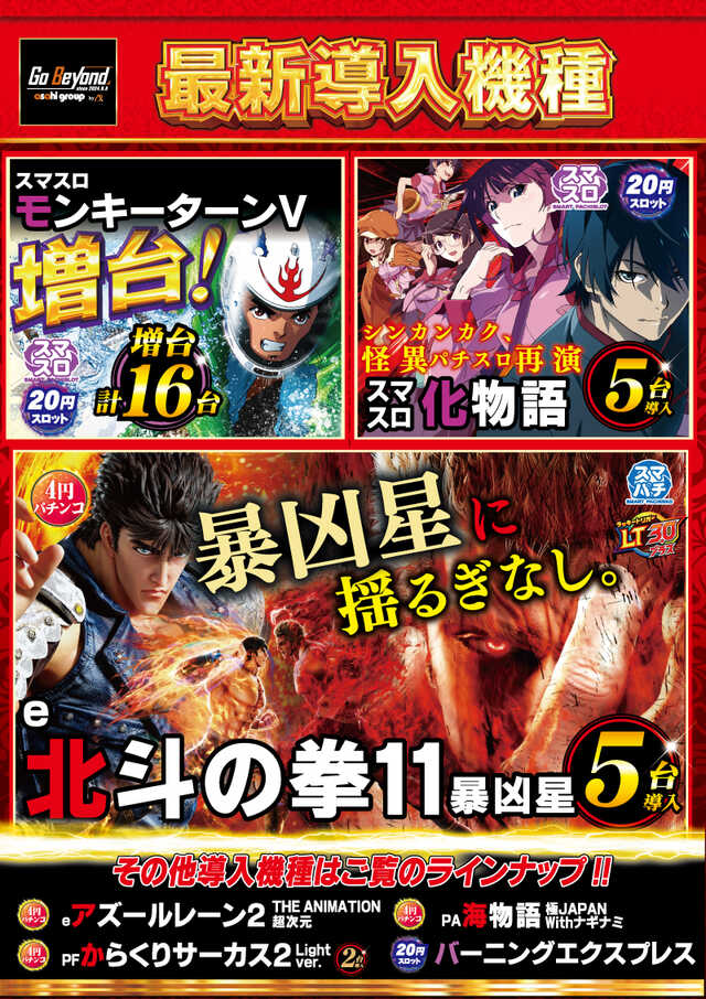 | 営業時間 | 10:00 ~ 22:45(定休日:新台入替日前日は店休日を頂きます(告知随時)。) |