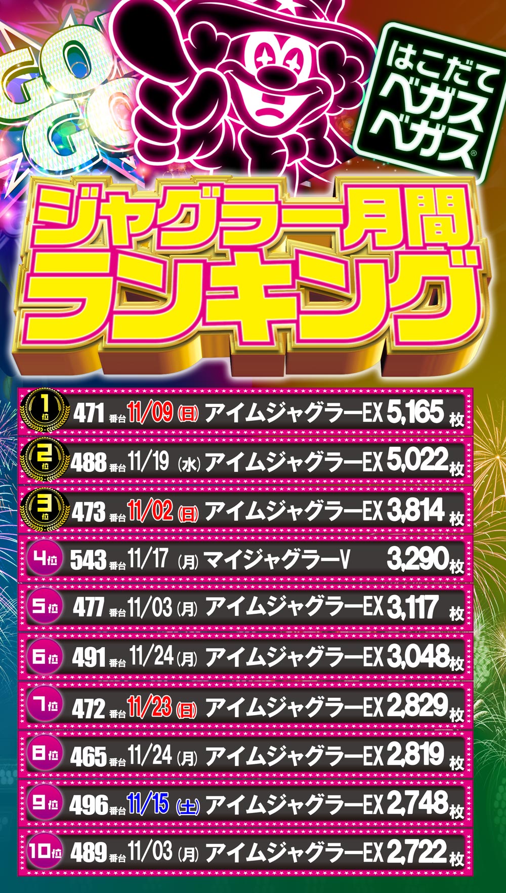 | 稼働台数 | パチスロ448台 |