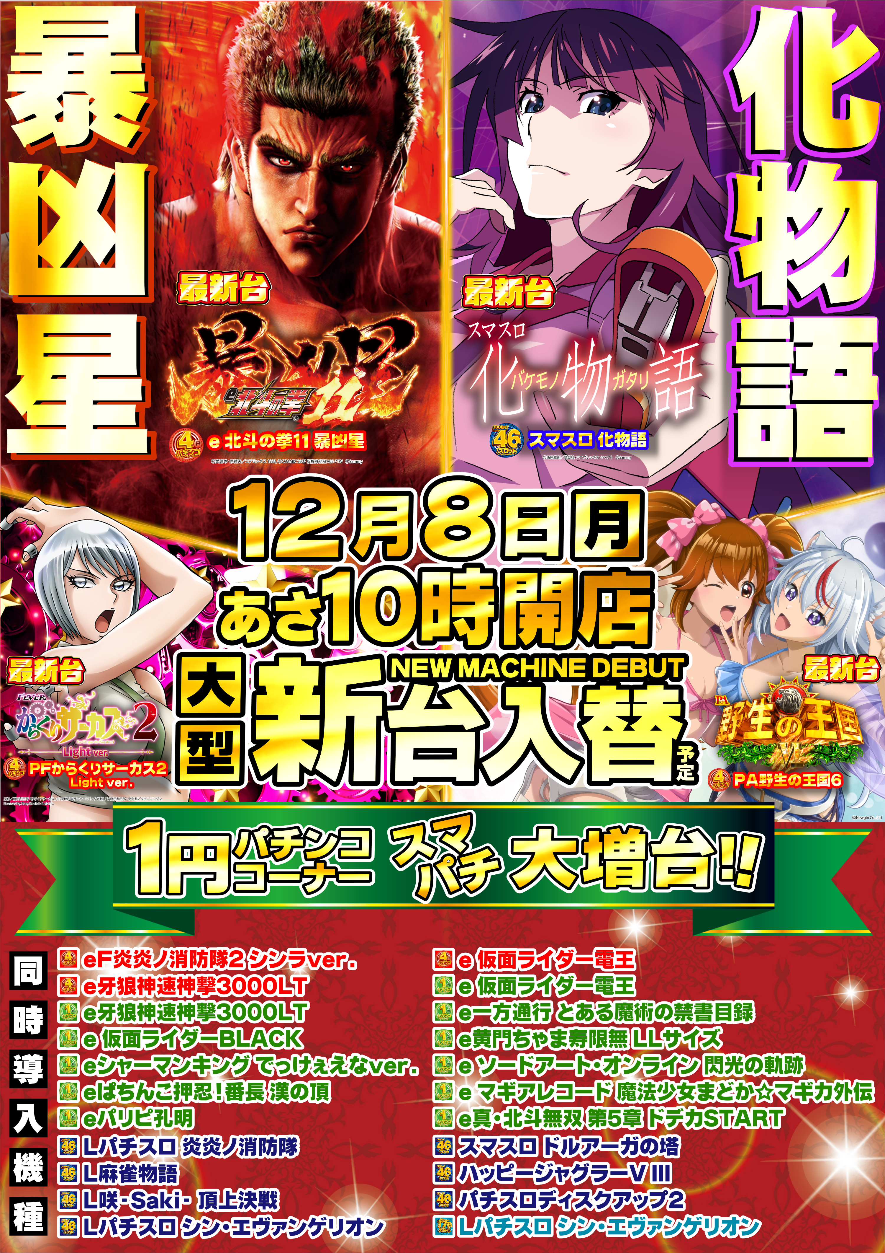 | 稼働台数 | パチンコ201台 / パチスロ166台 |