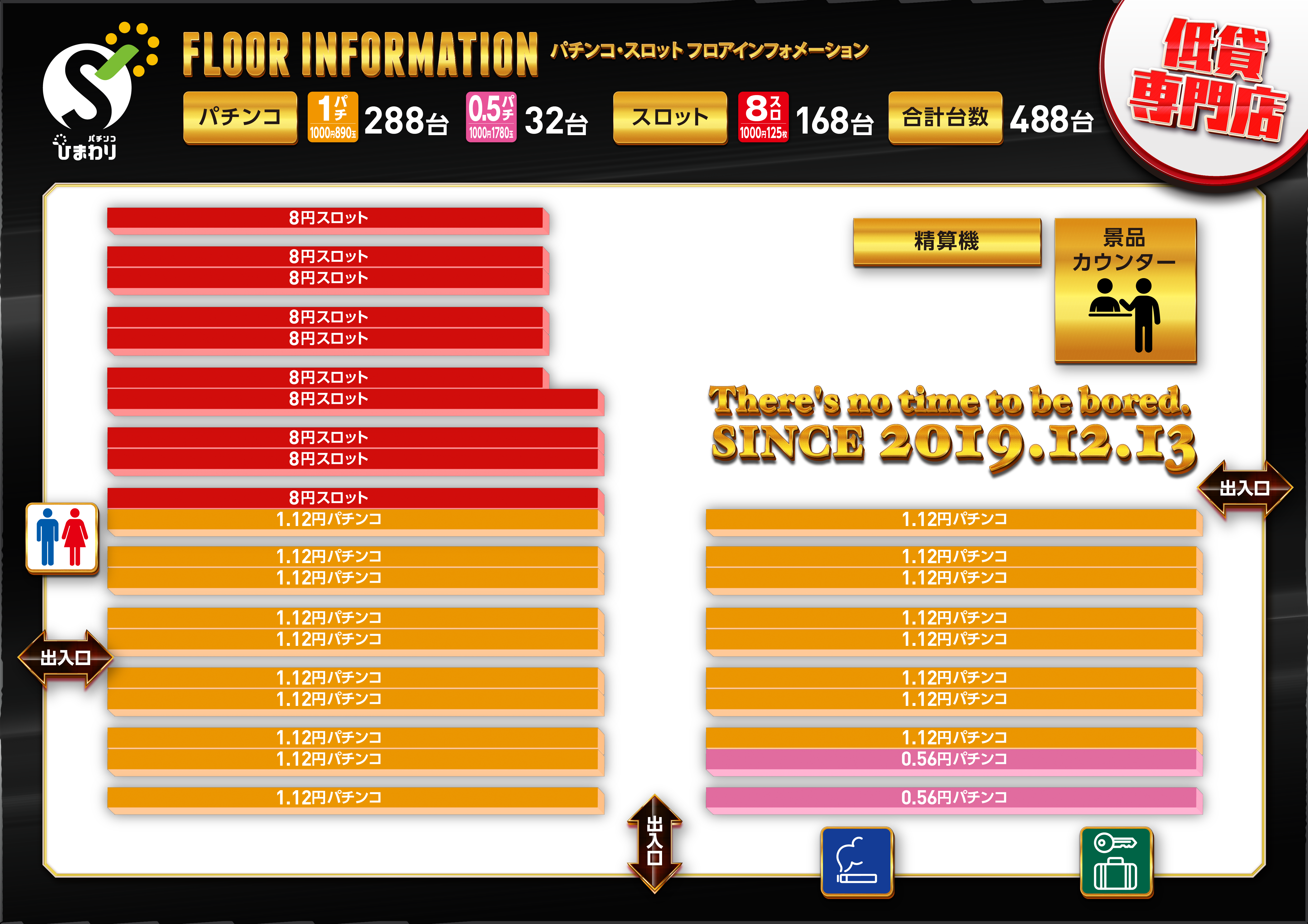 | 稼働台数 | パチンコ320台 / パチスロ168台 |