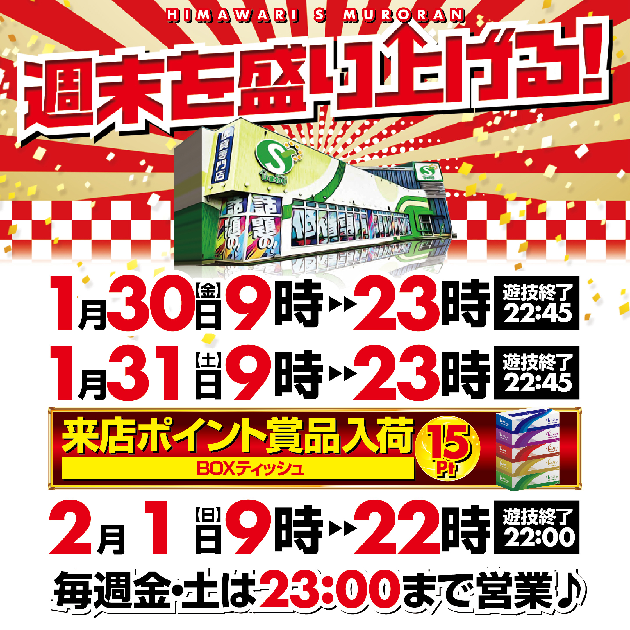 | 営業時間 | 09:00 ~ 22:00(定休日:年中無休) 毎週 金曜日・土曜日は23:00まで営業 |