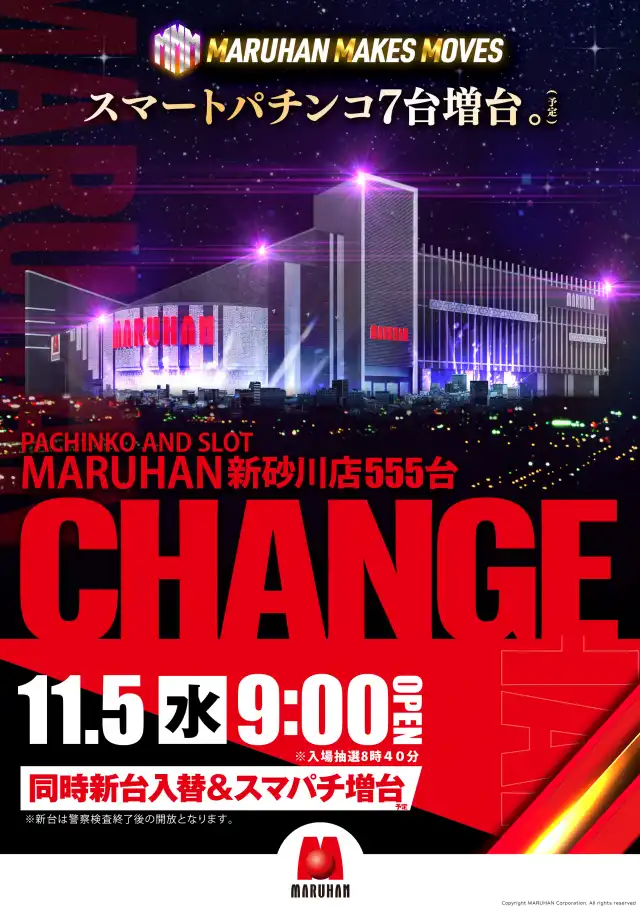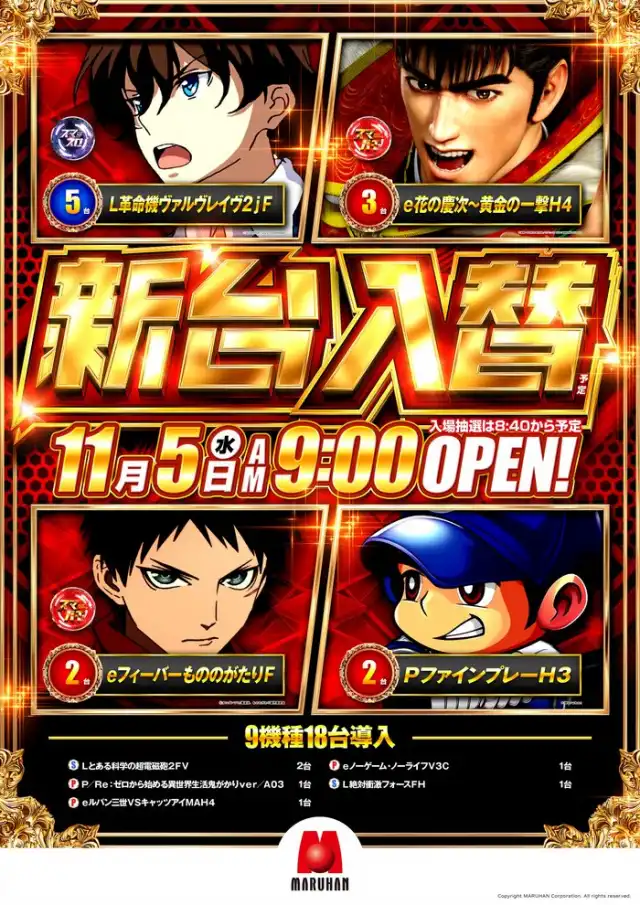 | 稼働台数 | パチンコ284台 / パチスロ271台 |