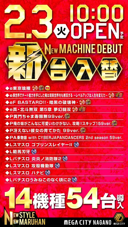 | 稼働台数 | パチンコ671台 / パチスロ600台 |