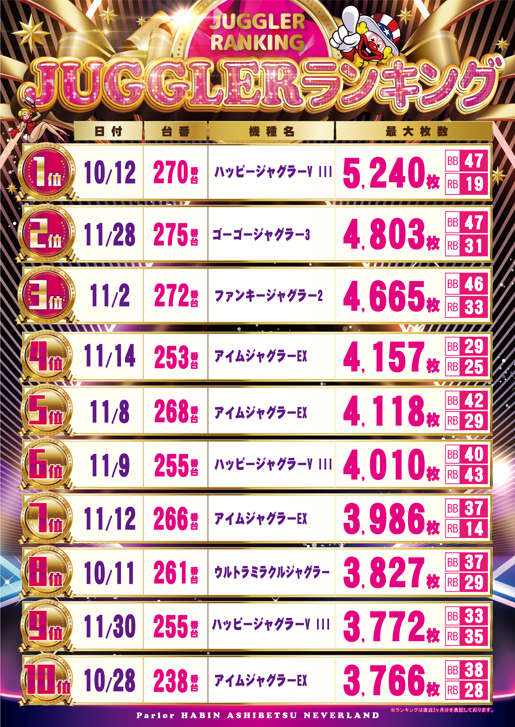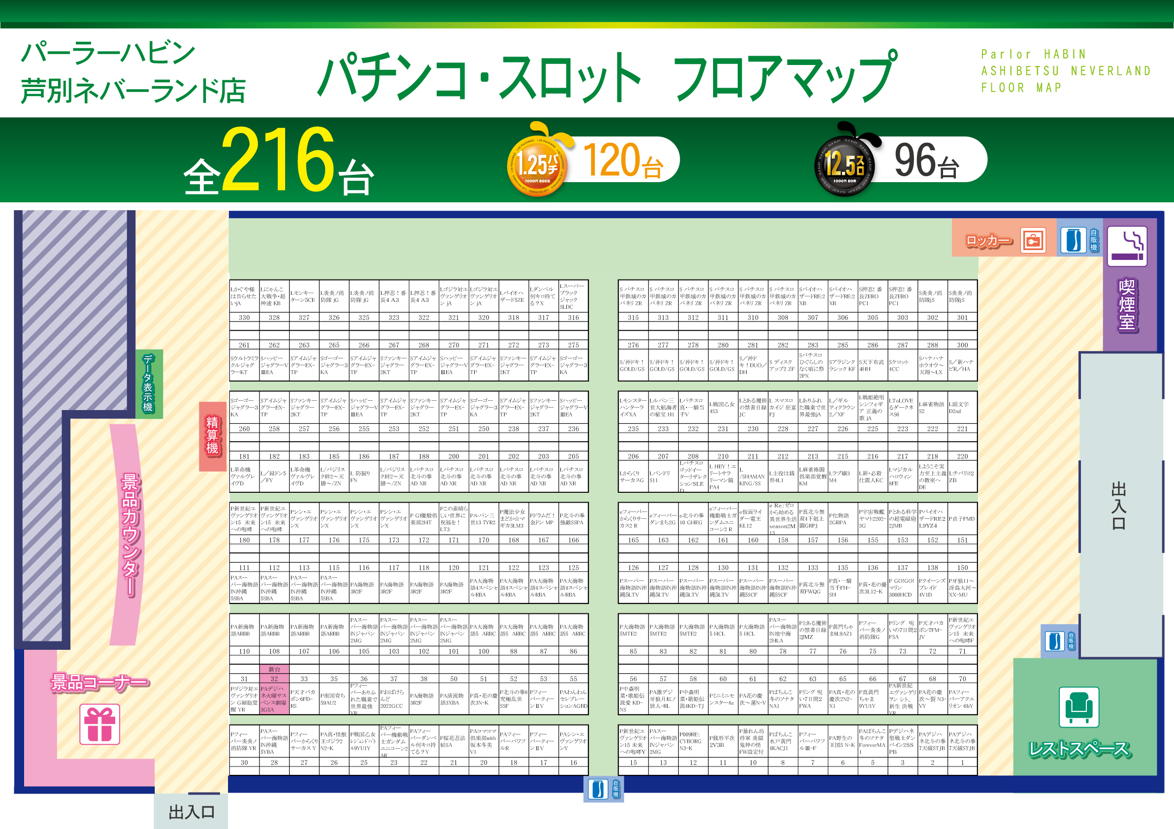 | 稼働台数 | パチンコ120台 / パチスロ96台 |