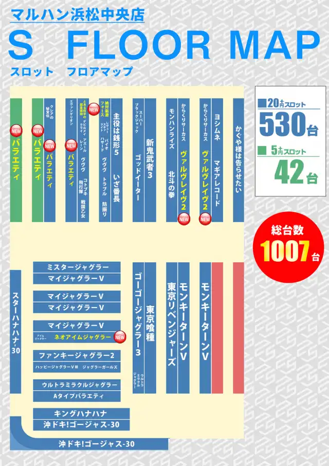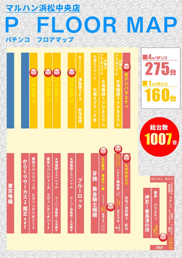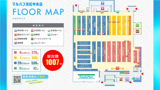 | 稼働台数 | パチンコ435台 / パチスロ572台 |