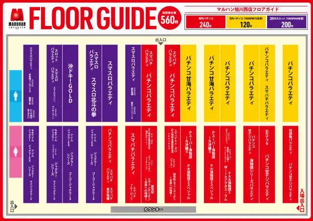 稼働台数 | パチンコ360台 / パチスロ200台 |