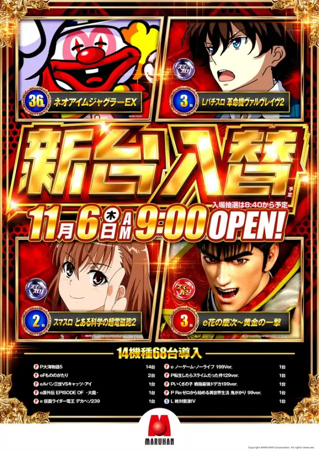 | 稼働台数 | パチンコ444台 / パチスロ262台 |