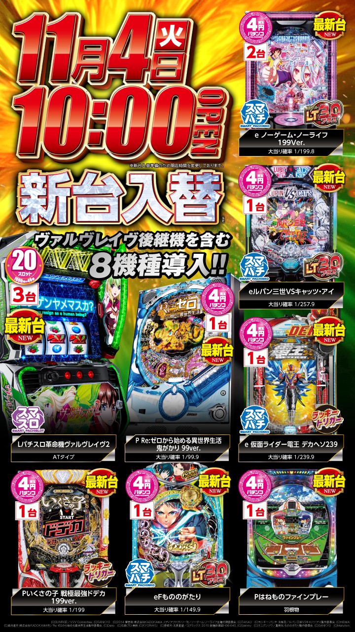 | 稼働台数 | パチンコ251台 / パチスロ174台 |