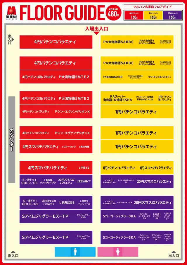 稼働台数 | パチンコ320台 / パチスロ160台 |