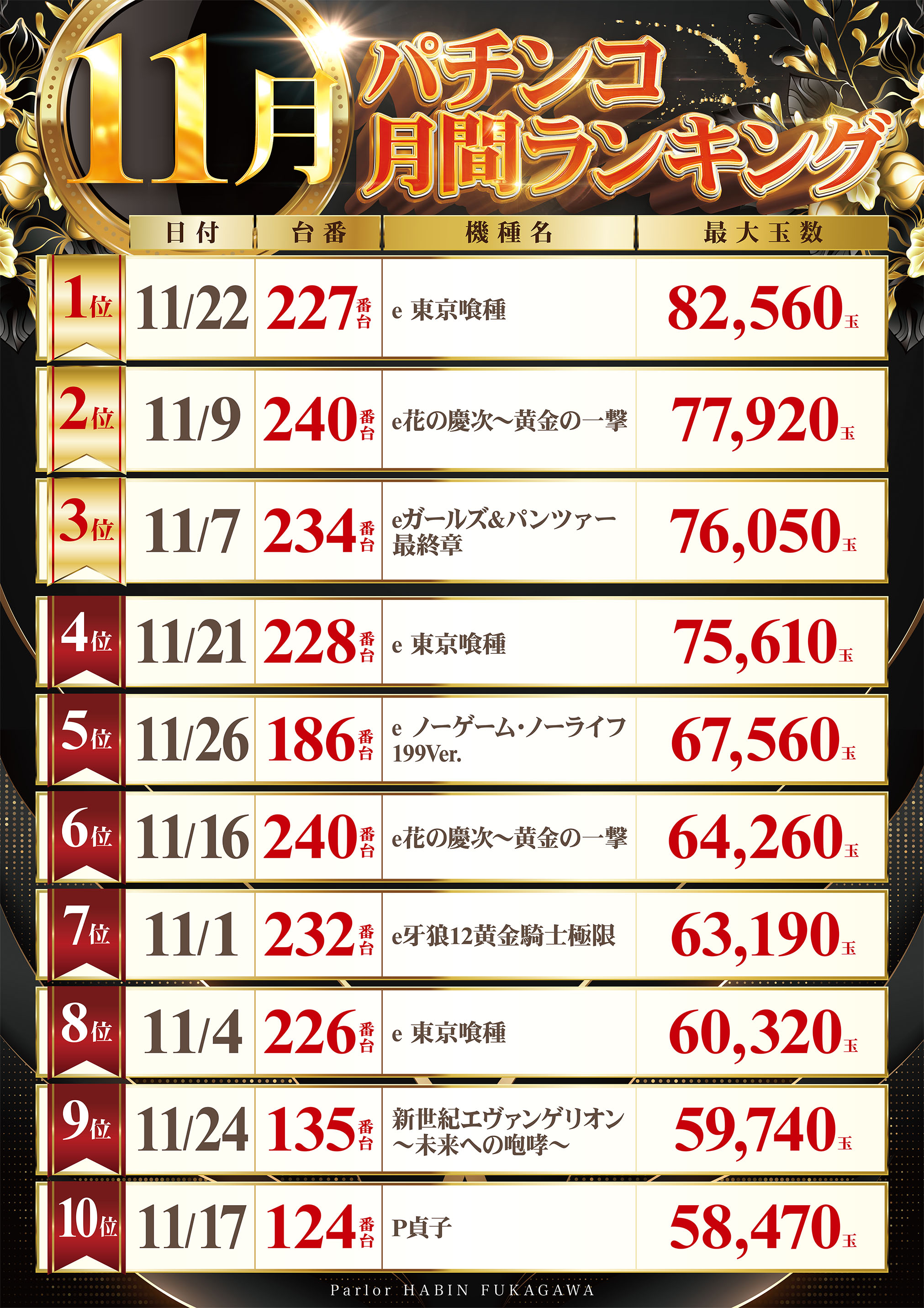 | 稼働台数 | パチンコ210台 / パチスロ150台 |