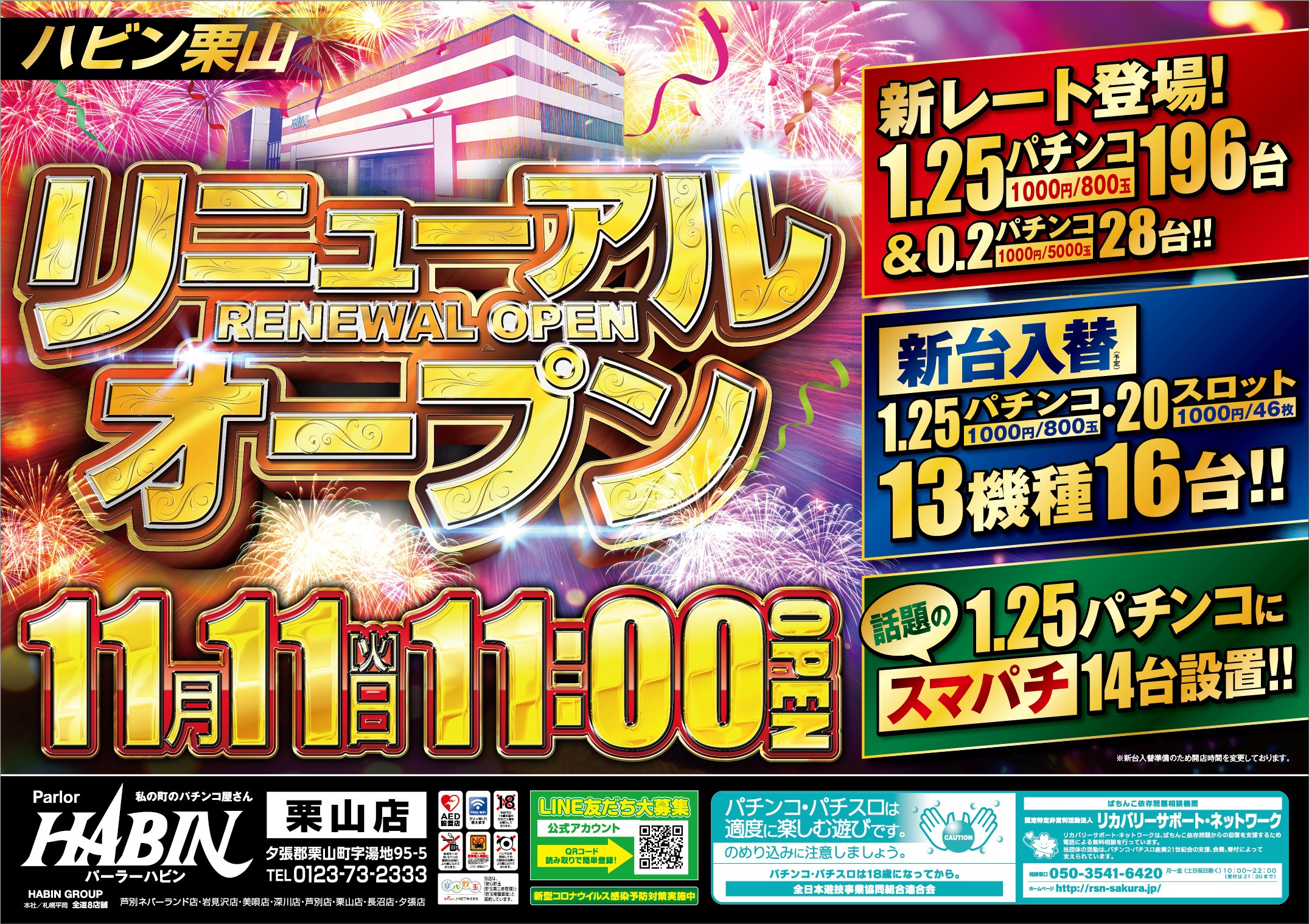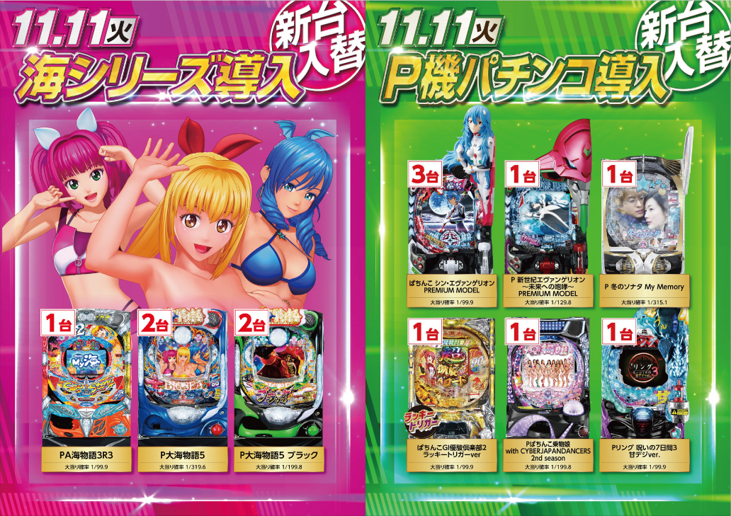 | 稼働台数 | パチンコ224台 / パチスロ112台 |