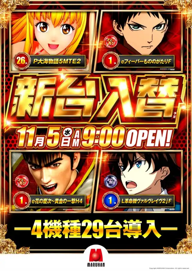 | 稼働台数 | パチンコ320台 / パチスロ160台 |