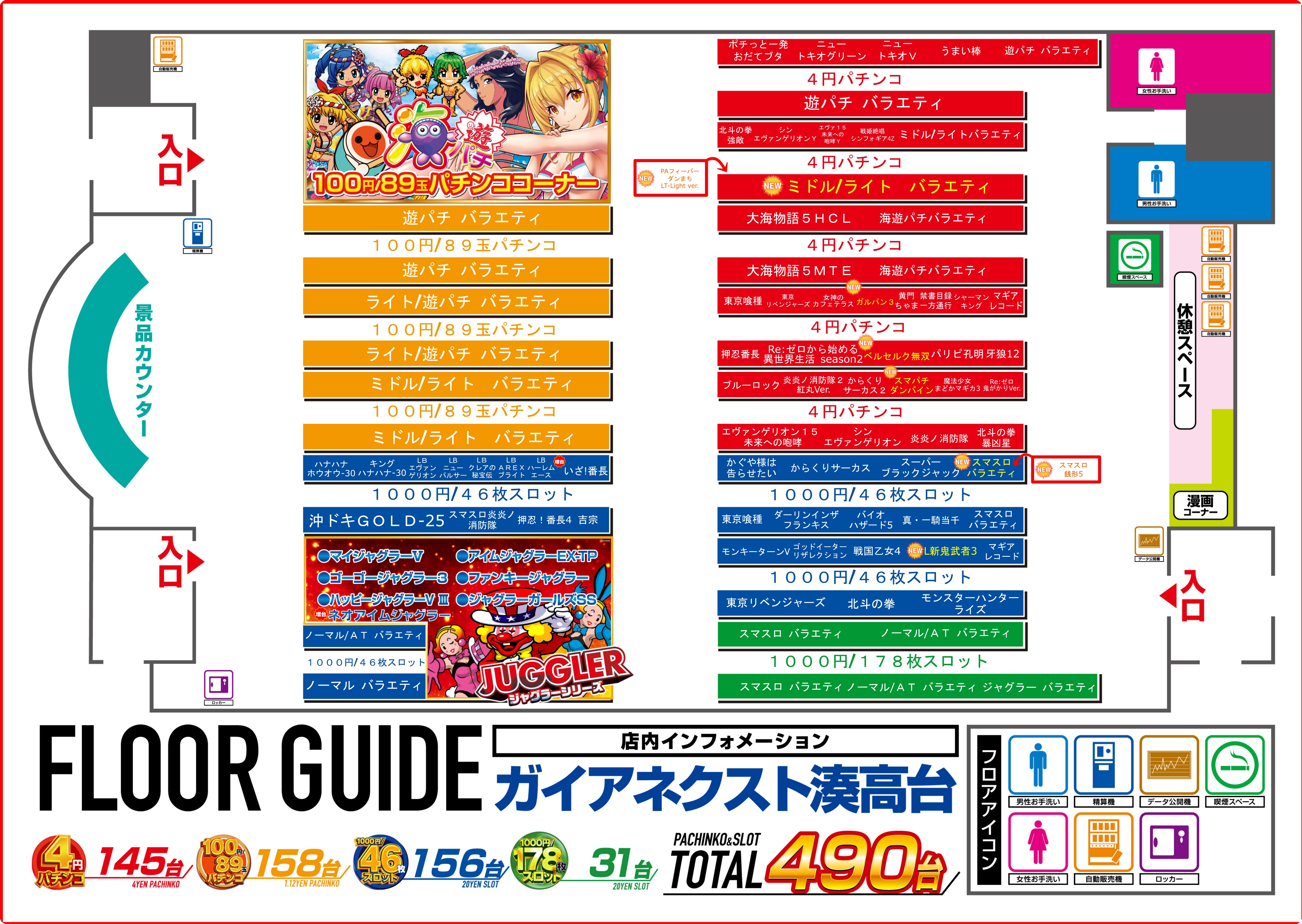 稼働台数 | パチンコ303台 / パチスロ187台 |