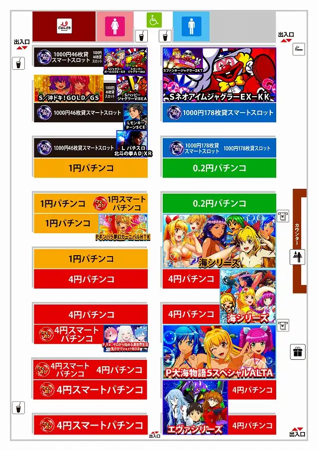 | 稼働台数 | パチンコ376台 / パチスロ160台 |