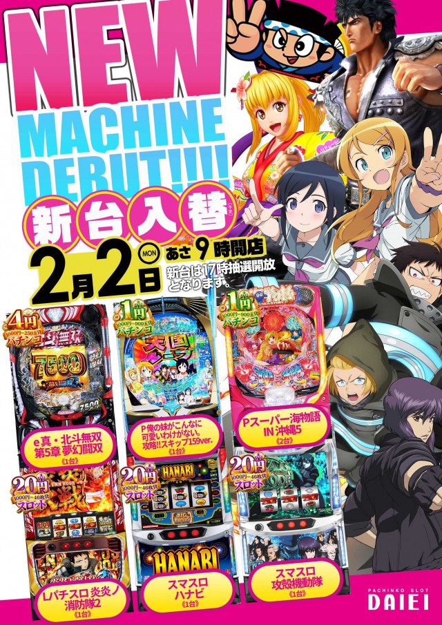 | 稼働台数 | パチンコ90台 / パチスロ123台 |